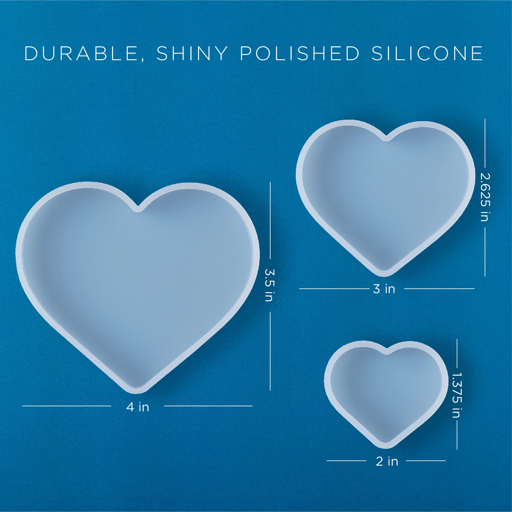 - VERSATILE SIZES & SHAPES - These unique resin silicone molds are great for any resin craft project. The shapes in this set include 3 different heart shapes each measuring 1.75" x 2", 2.625" x 3", 3.5" x 4"